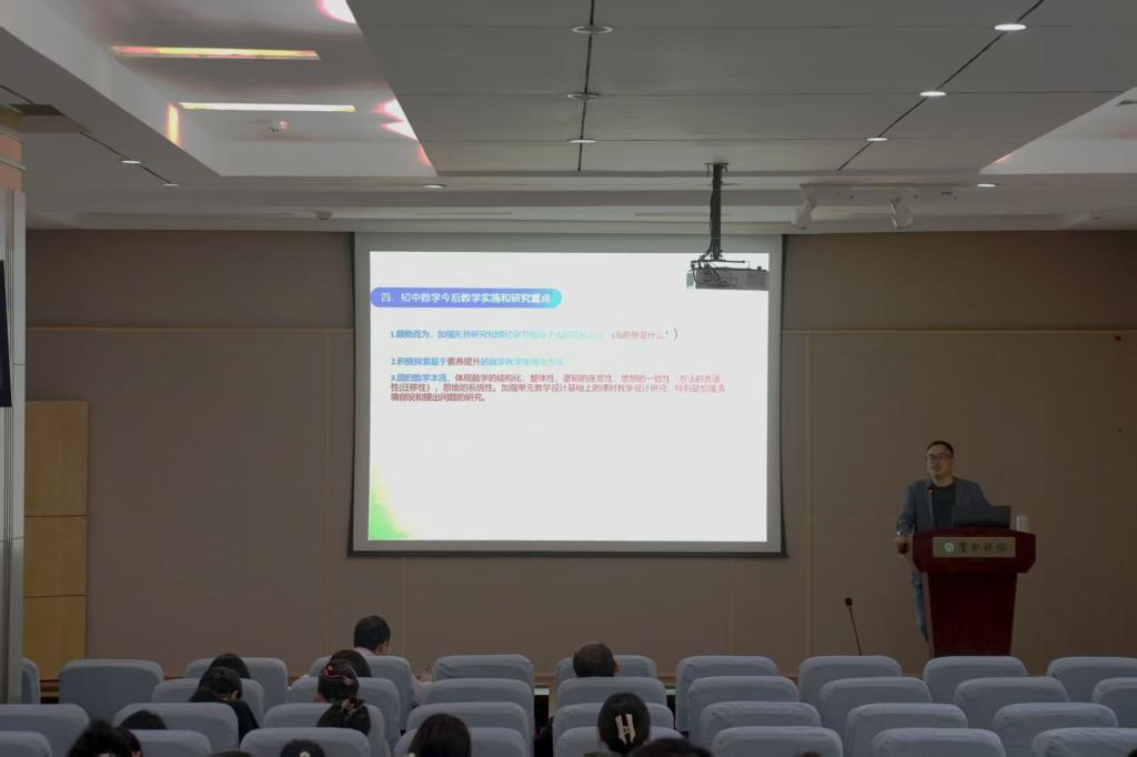 为进一步深化卓越教师培养,数学与统计学院于2025年9月18日在图书馆贤林讲坛举办了"深化卓越教师培养系列活动之‘名师名校长讲坛'"。本次讲座特邀信阳市教育局基础教育教学研究室初中数学教研员、中小学高级教师、国培专家库成员张健老师作题为《“双新”背景下的数学教师成长之路》的专题报告。数学与统计学院部分教师及100余名本科生共同参加了报告会。报告会由副院长何俊杰主持。