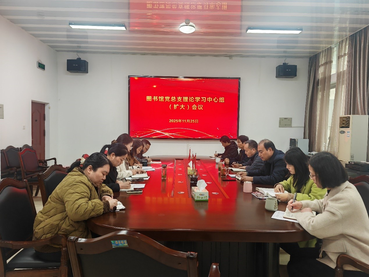 为深入学习贯彻党的二十届四中全会精神以及学校第一次党代会等精神,11月25日,图书馆党总支理论学习中心组在图书馆会议室召开扩大会议,科学谋划图书馆“十五五”发展规划。图书馆领导班子成员、全体科级干部参加会议,会议由党总支书记田照俊主持。